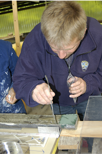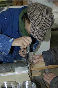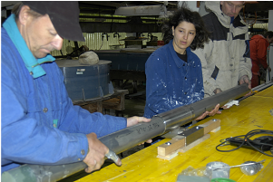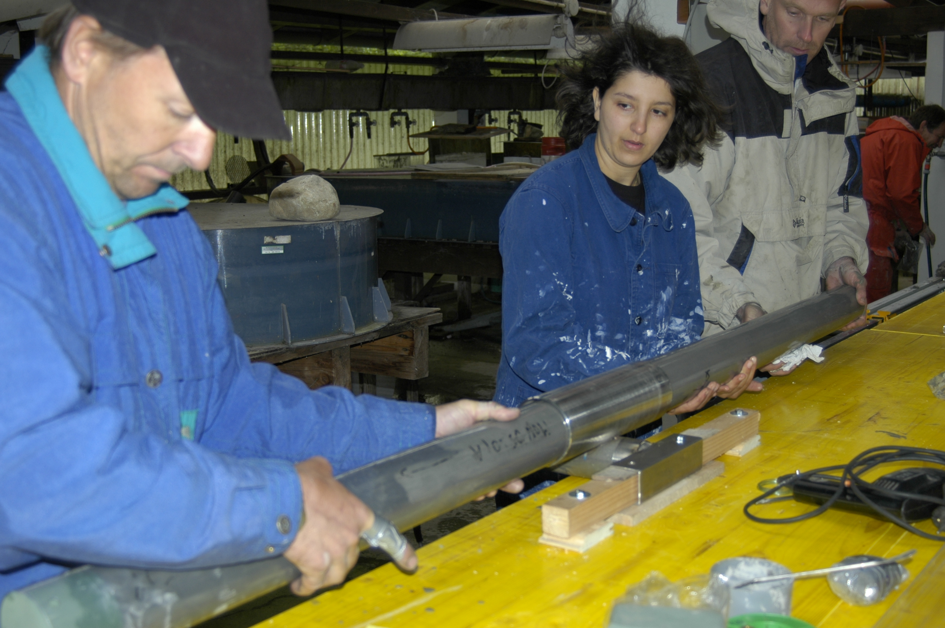 5mm-halfcore-slices for the ostracodologists being cut and stored in Petri-dishes (... no, the samples, not the o..ogists)