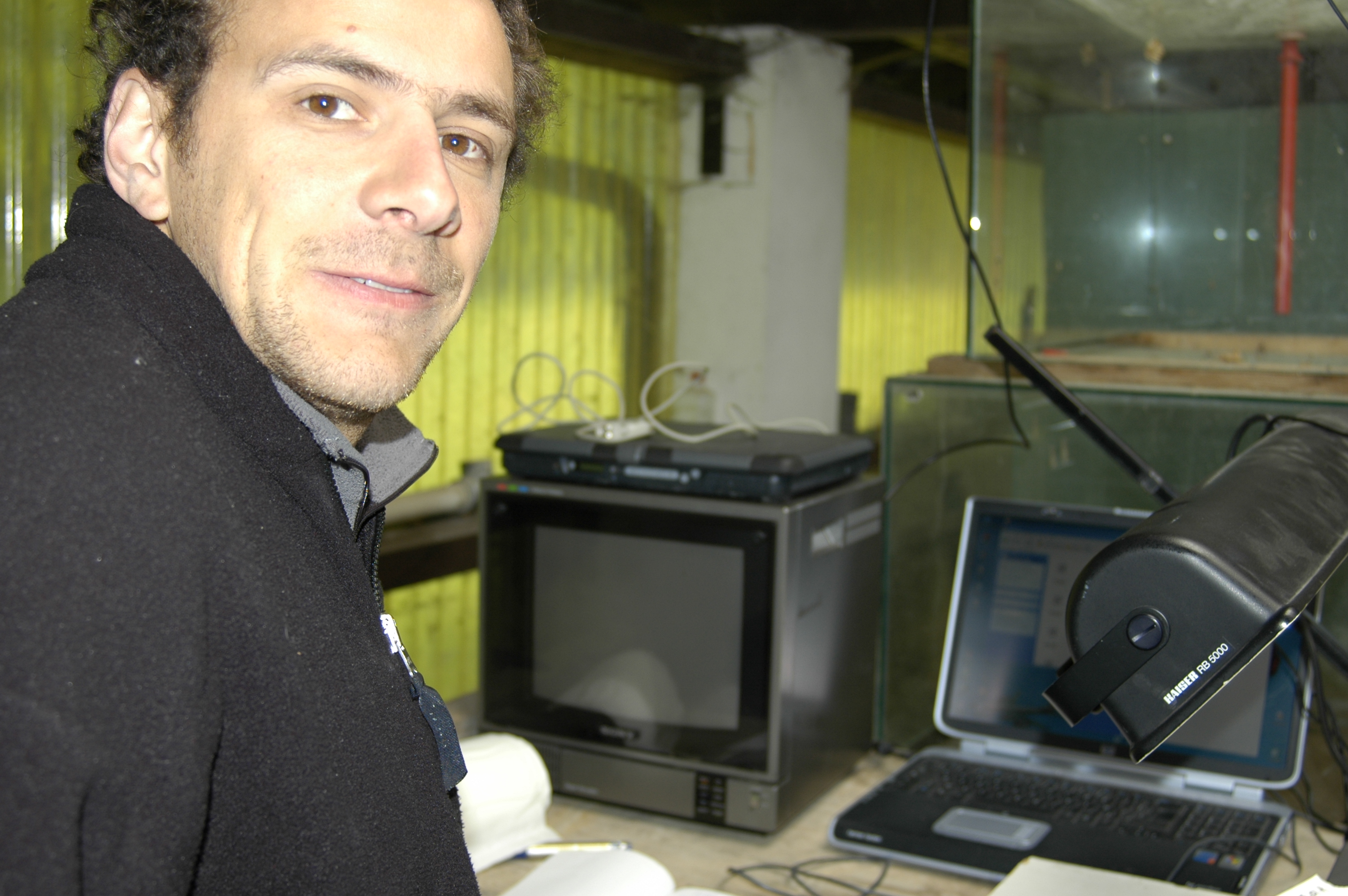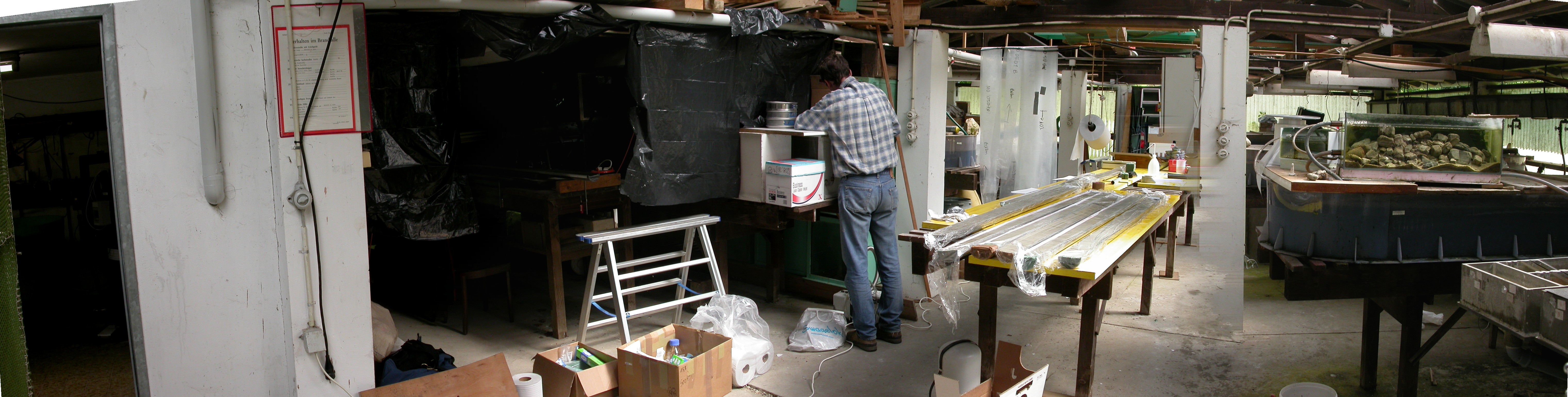 The corelab in Mondsee, in a building usually used for fish research by the Austrian Institute for Fishery in Scharfling (many thanks again, Ali!). The lake is just in three minutes walking distance. In the center a 6 m long table for cutting, description, preparation, and subsampling of the cores. The photo-lab is at the left hand, behind the black plastic sacs, used to reduce parasite light for better spectroscopy.