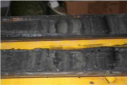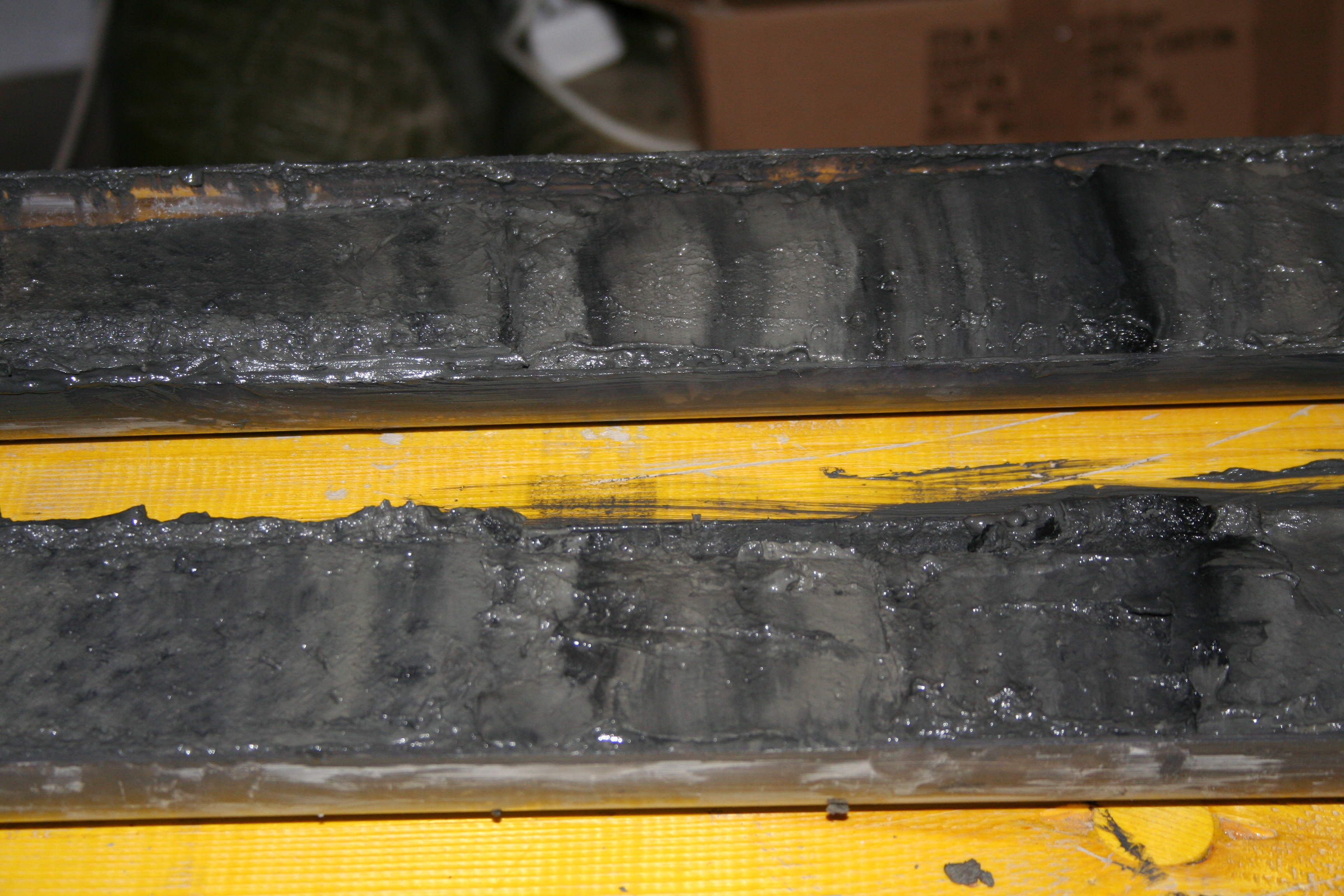 Some mud: earth-quake induced perturbation to the left; stratified "normal" sediment to the right