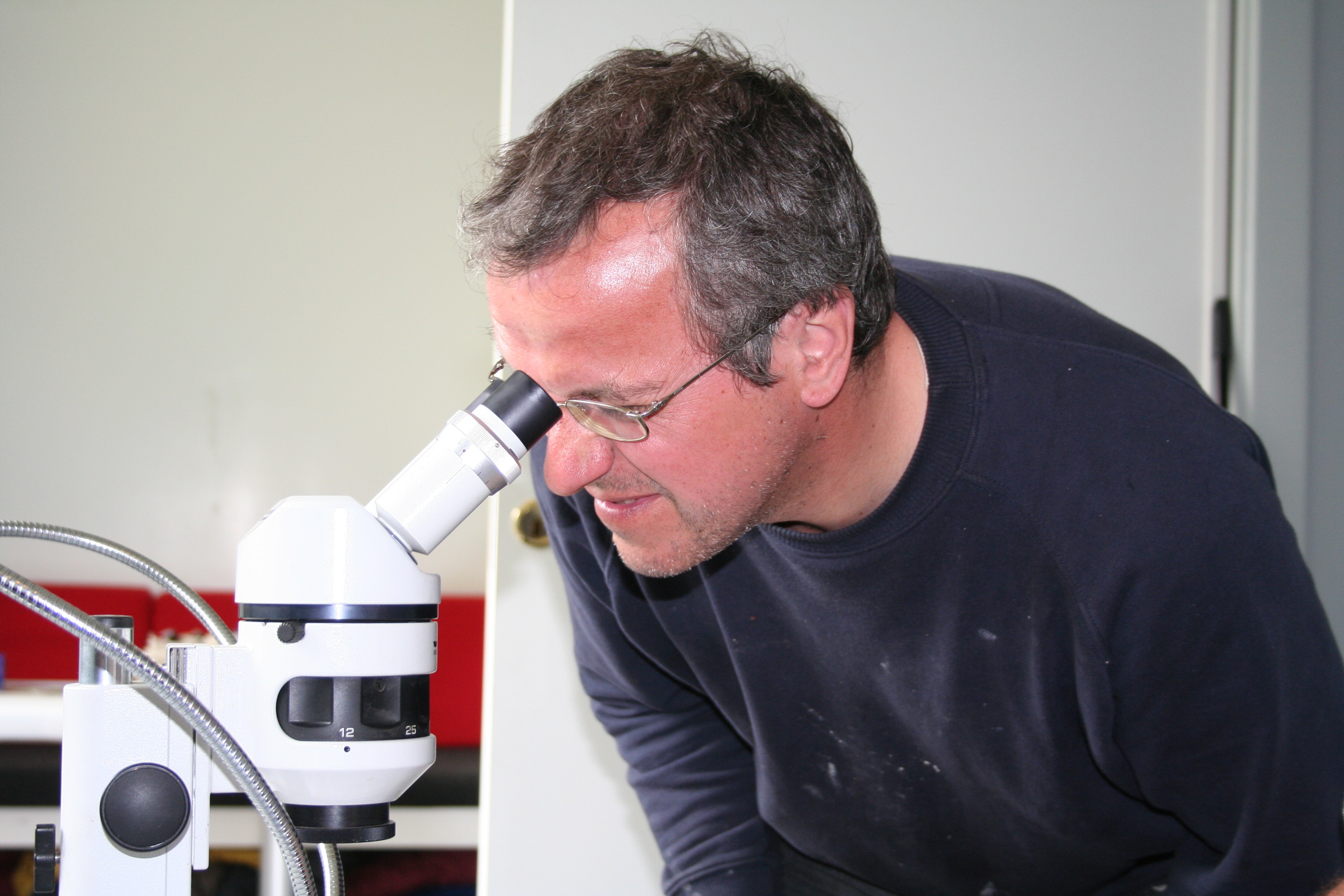Biologist, observing ostracodes. Never told us what was so interesting!