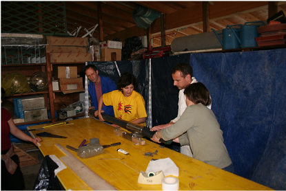 Core laboratory: cutting the "liners"; all samples needed were already sampled at place